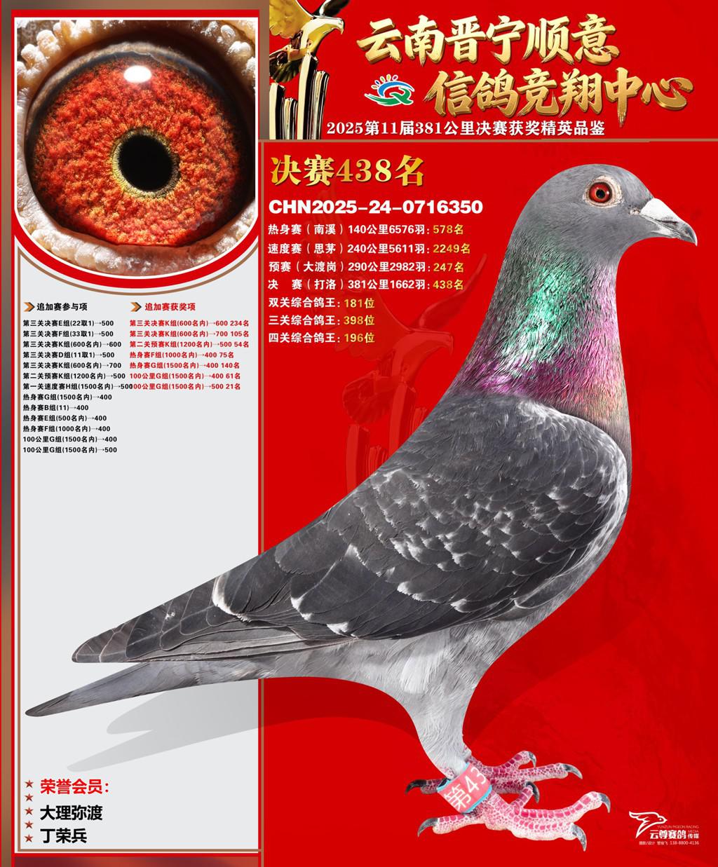 云南晋宁顺意信鸽竞翔中心2025决赛438名丁荣兵2025-24-0716350大理弥渡获奖鸽展示!