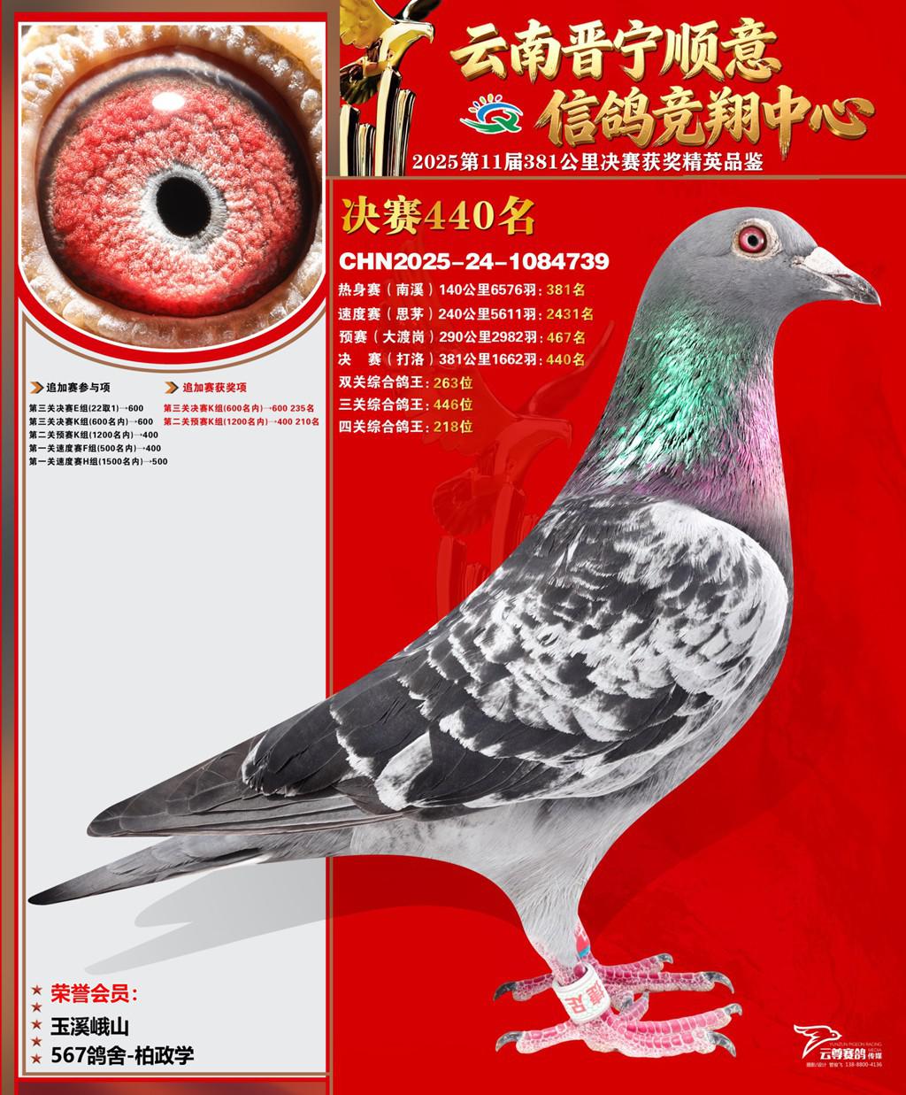 云南晋宁顺意信鸽竞翔中心2025决赛440名567鸽舍-柏政学2025-24-1084739玉溪峨山获奖鸽展示!