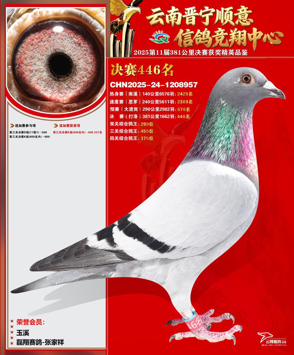 云南晋宁顺意信鸽竞翔中心2025决赛446名磊翔赛鸽-张家祥2025-24-1208957玉溪获奖鸽展示!