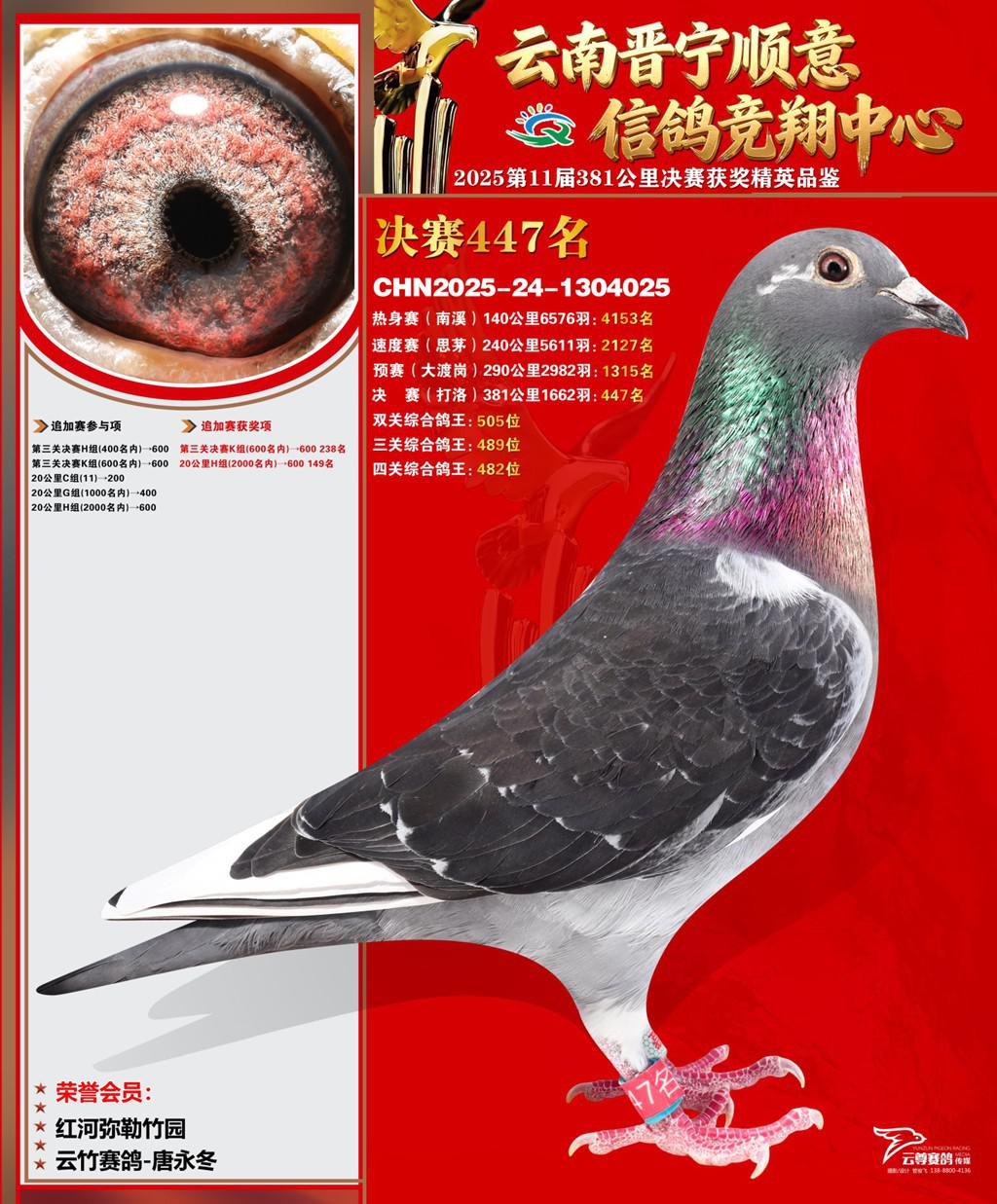 云南晋宁顺意信鸽竞翔中心2025决赛447名云竹赛鸽-唐永冬2025-24-1304025红河弥勒竹园获奖鸽展示!