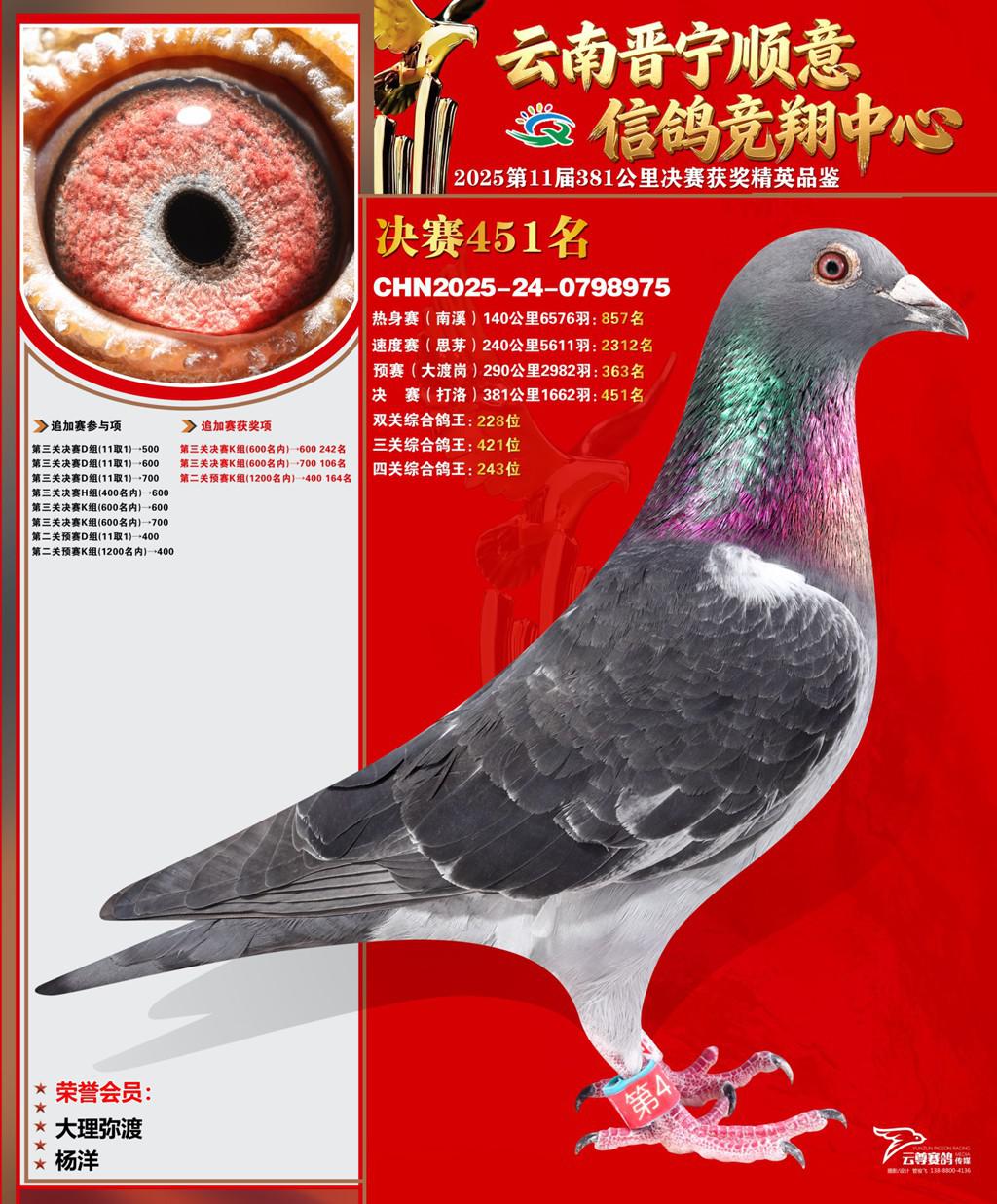 云南晋宁顺意信鸽竞翔中心2025决赛451名杨洋2025-24-0798975大理弥渡获奖鸽展示!