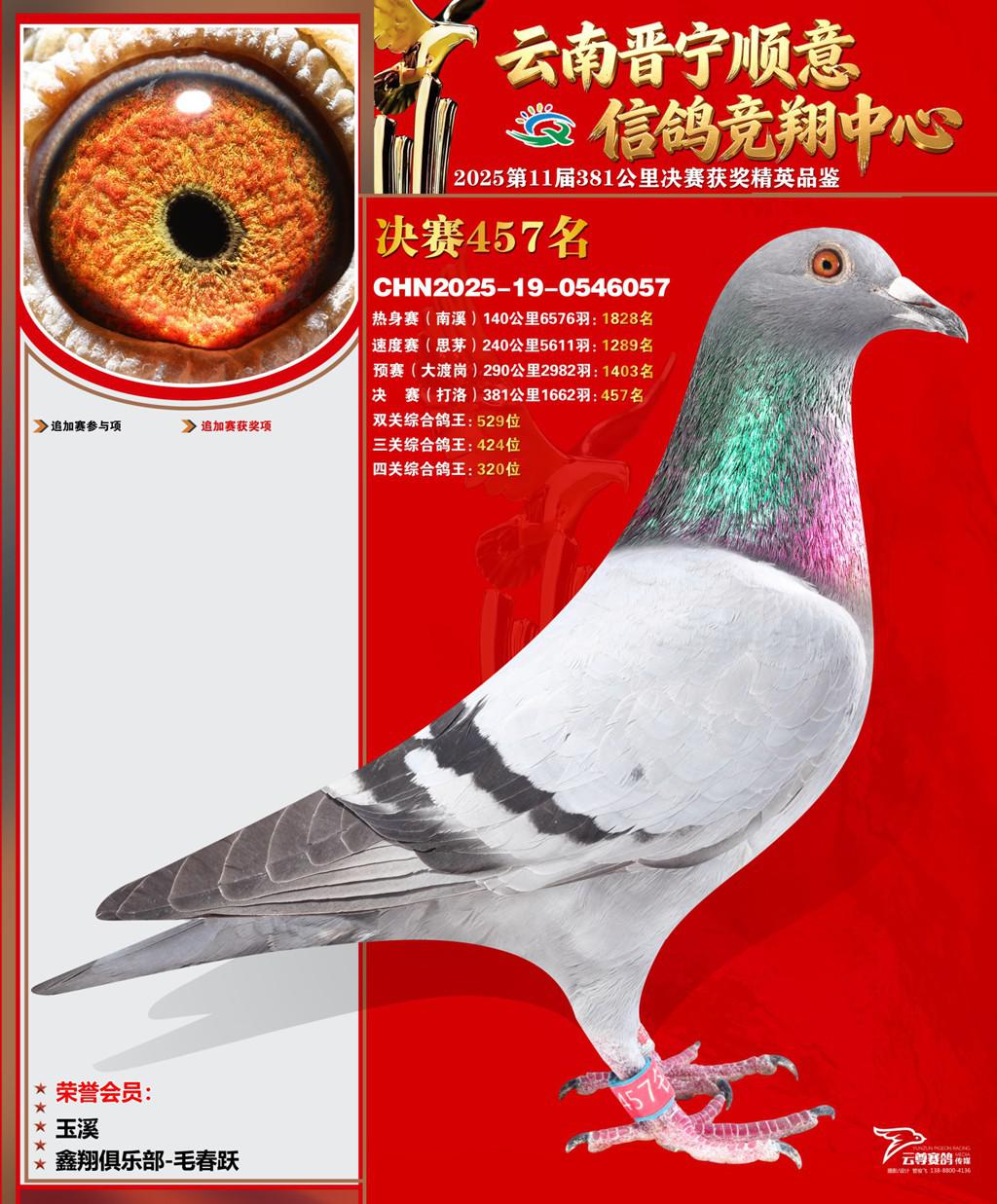 位置:云南晋宁顺意信鸽竞翔中心2025获奖鸽展示\决赛457名