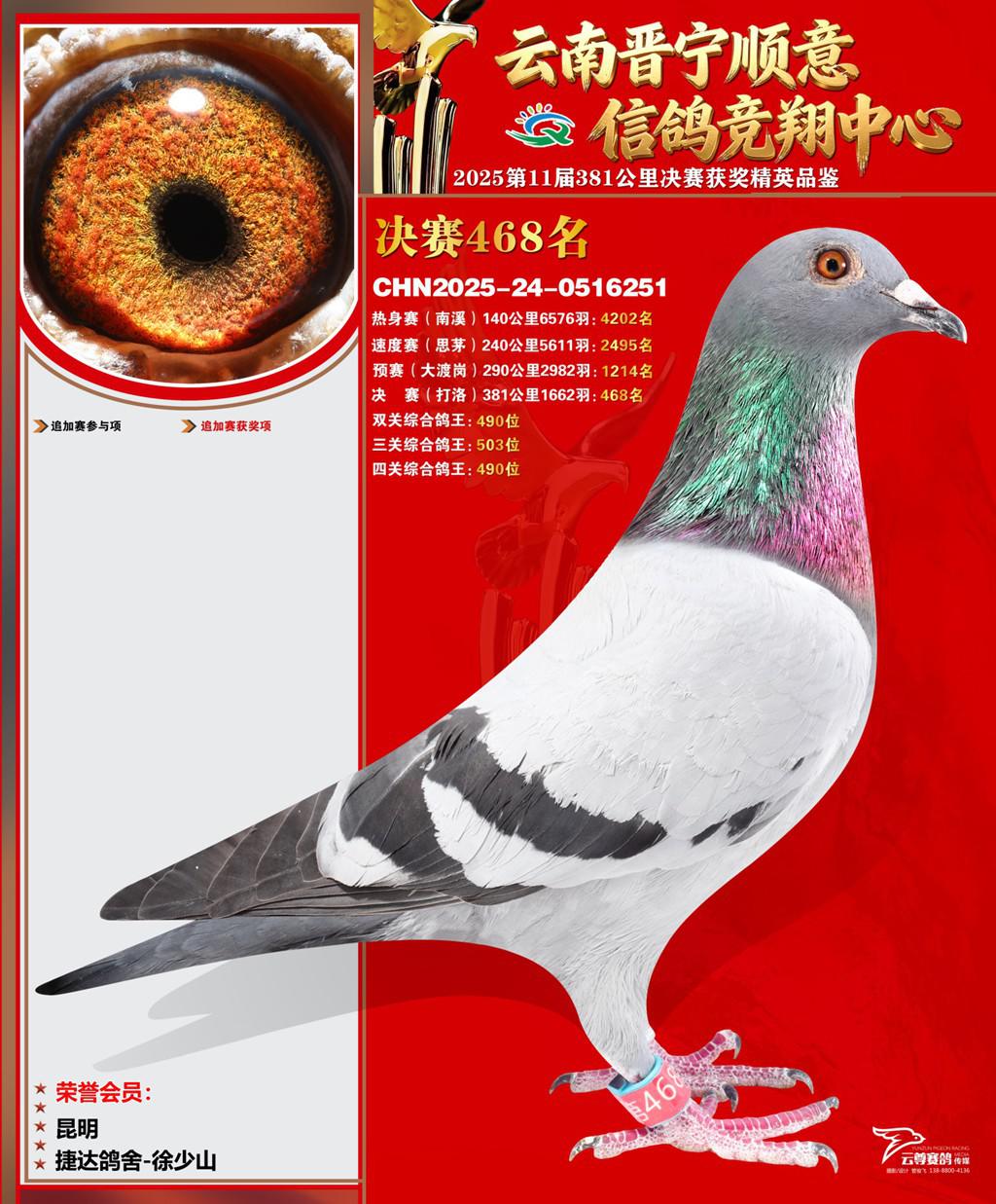 云南晋宁顺意信鸽竞翔中心2025决赛468名捷达鸽舍-徐少山2025-24-0516251昆明获奖鸽展示!