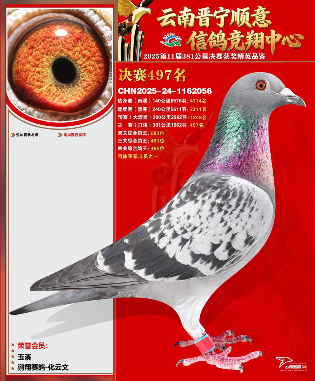 云南晋宁顺意信鸽竞翔中心2025决赛497名鹏翔赛鸽-化云文2025-24-1162056玉溪获奖鸽展示!