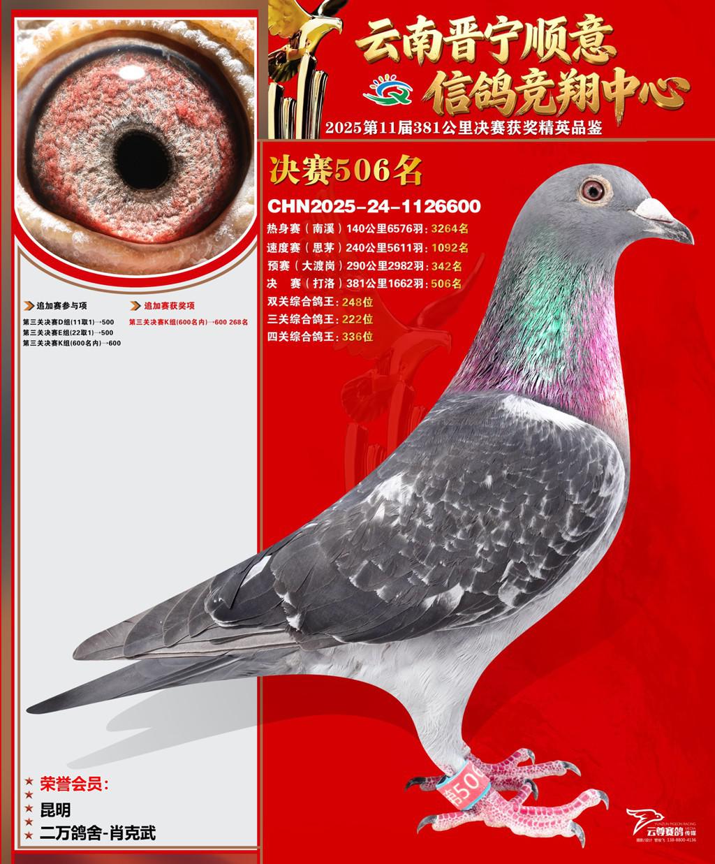 云南晋宁顺意信鸽竞翔中心2025决赛506名二万鸽舍-肖克武2025-24-1126600昆明获奖鸽展示!