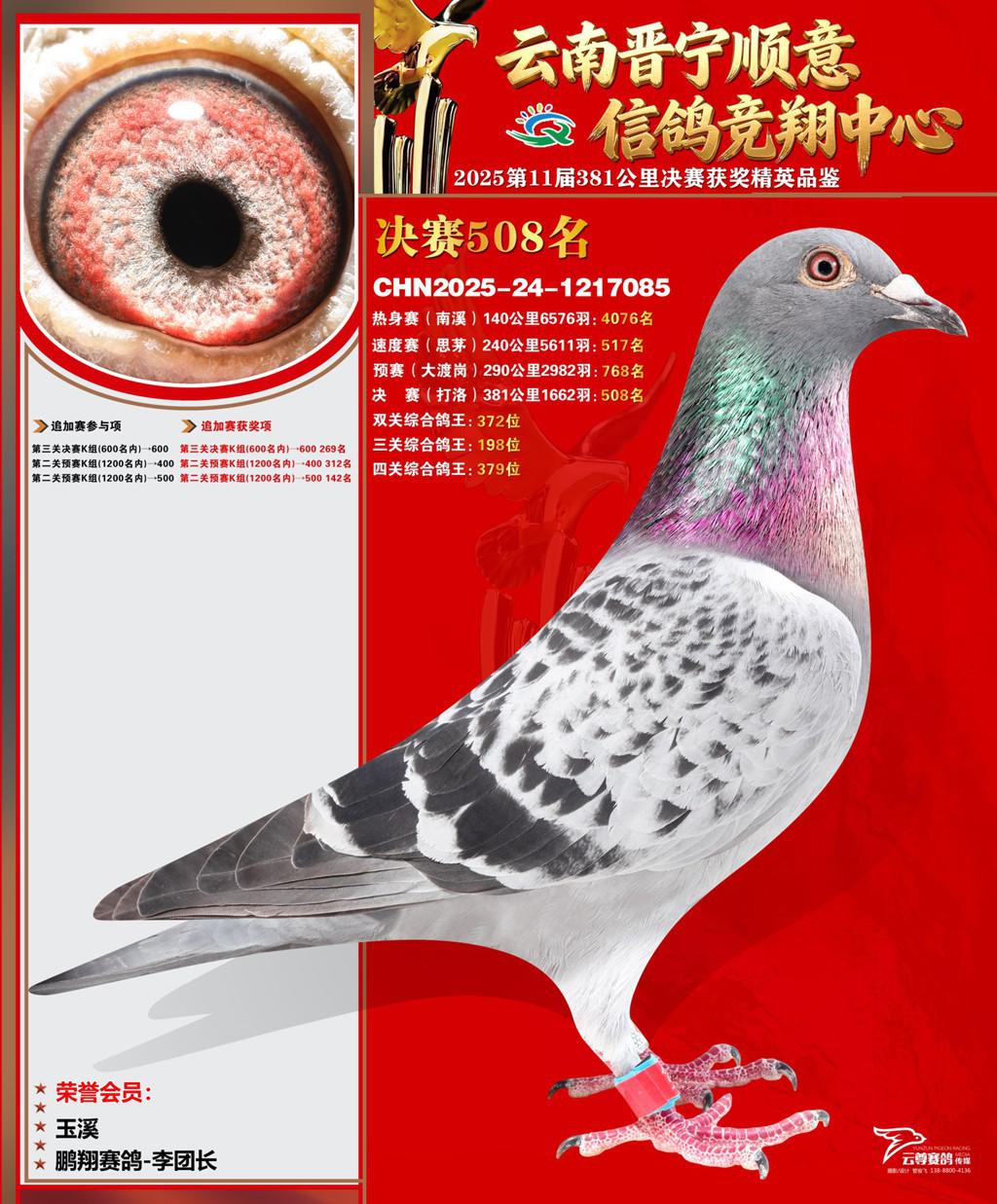 云南晋宁顺意信鸽竞翔中心2025决赛508名鹏翔赛鸽-李团长2025-24-1217085玉溪获奖鸽展示!