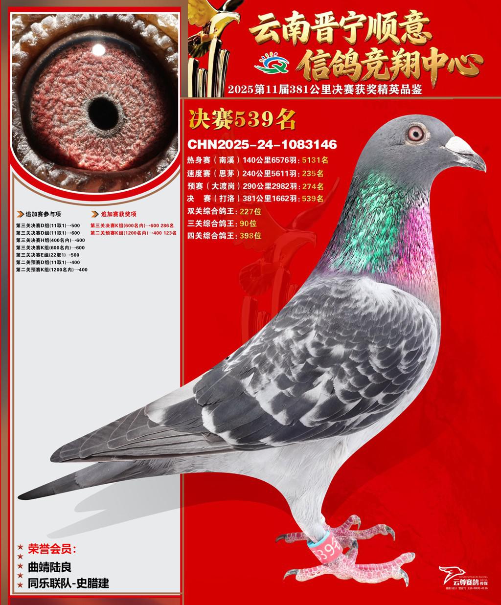 云南晋宁顺意信鸽竞翔中心2025决赛539名同乐联队-史腊建2025-24-1083146曲靖陆良获奖鸽展示!
