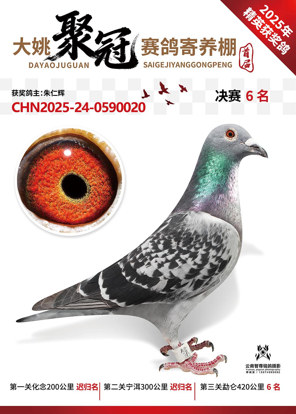 大姚聚冠赛鸽寄养棚2025决赛6名朱仁辉2025-24-0590020获奖鸽展示!