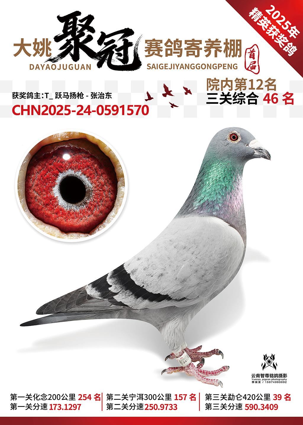 大姚聚冠赛鸽寄养棚2025综合46名T_跃马扬枪-张治东2025-24-0591570获奖鸽展示!