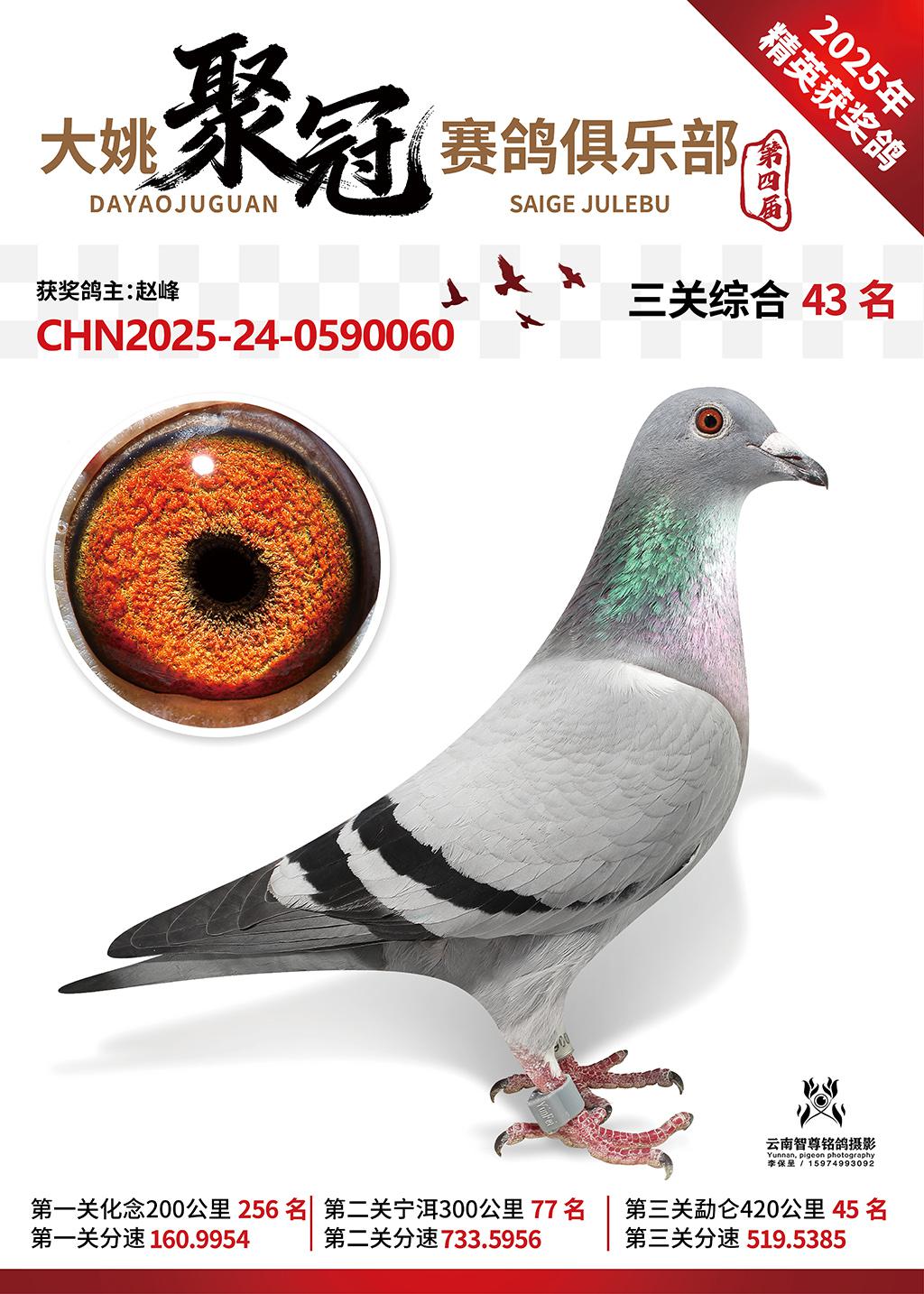 大姚聚冠赛鸽寄养棚2025综合43名赵峰2025-24-0590060获奖鸽展示!