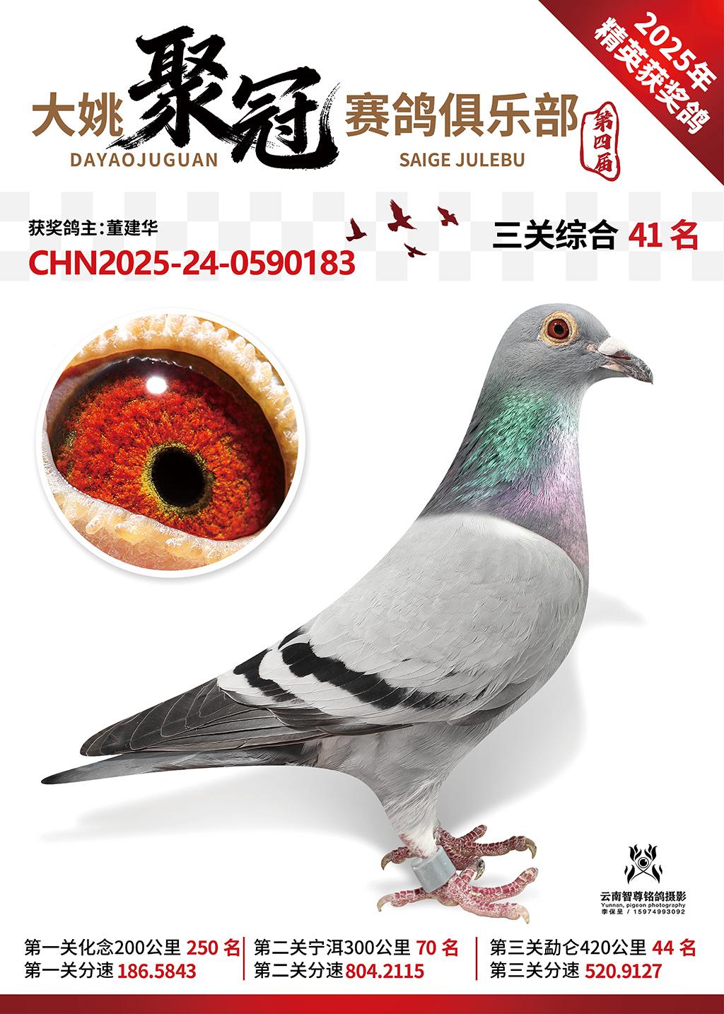 大姚聚冠赛鸽寄养棚2025综合41名董建华2025-24-0590183获奖鸽展示!