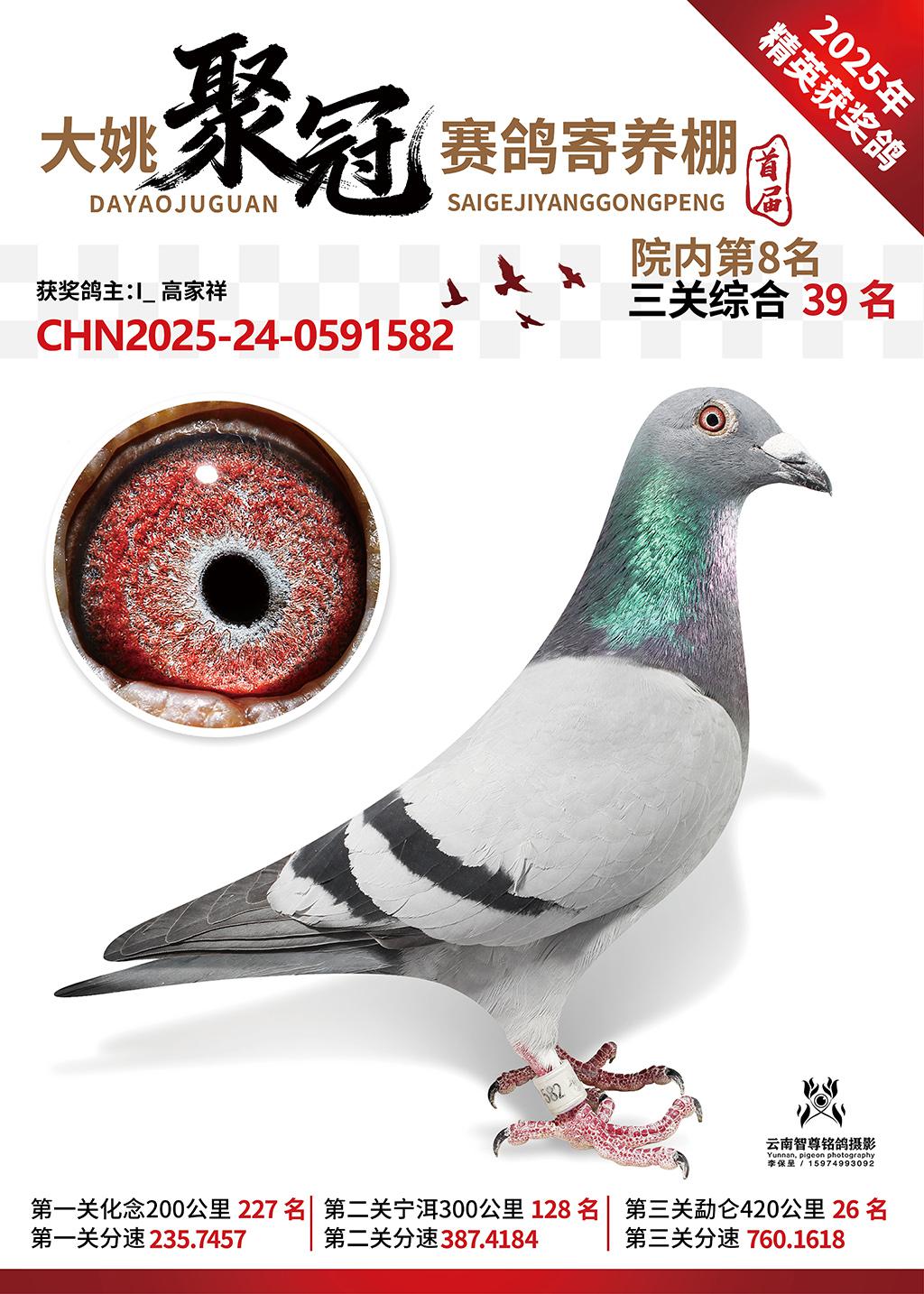 大姚聚冠赛鸽寄养棚2025综合39名I_高家祥2025-24-0591582获奖鸽展示!