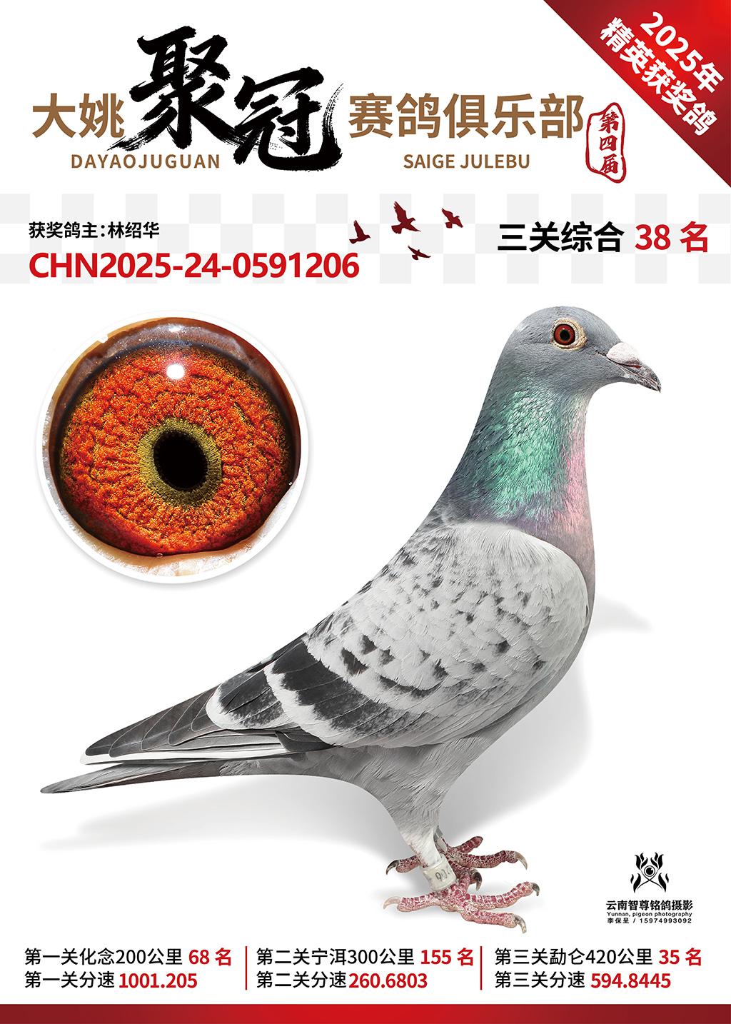 大姚聚冠赛鸽寄养棚2025综合38名林绍华2025-24-0591206获奖鸽展示!