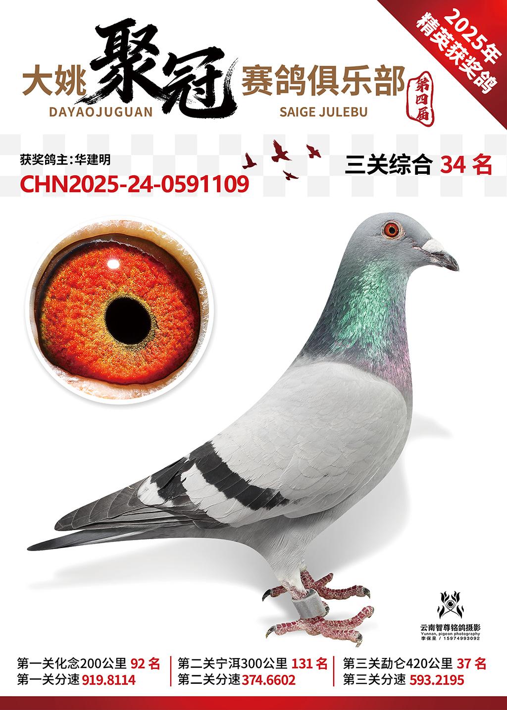 大姚聚冠赛鸽寄养棚2025综合34名华建明2025-24-0591109获奖鸽展示!