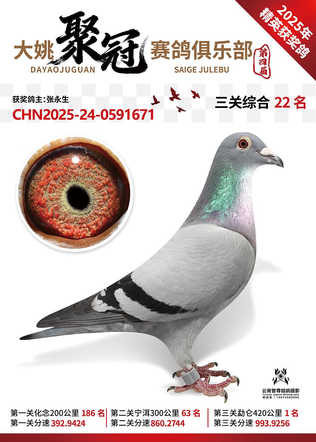 大姚聚冠赛鸽寄养棚2025综合22名张永生2025-24-0591671获奖鸽展示!