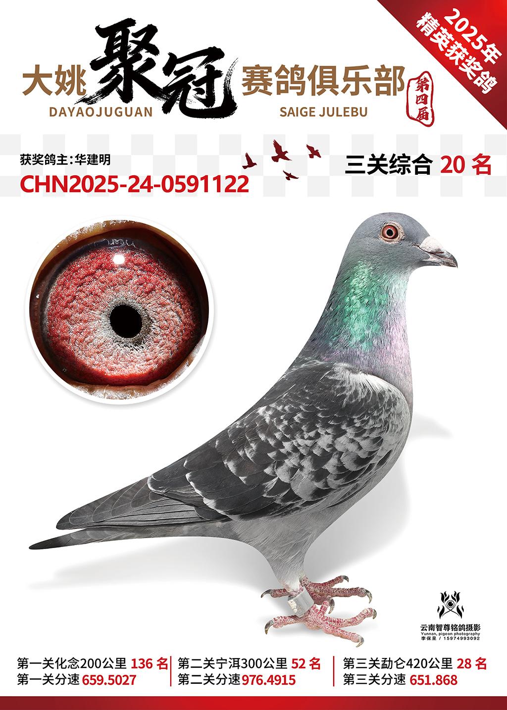 大姚聚冠赛鸽寄养棚2025综合20名华建明2025-24-0591122获奖鸽展示!
