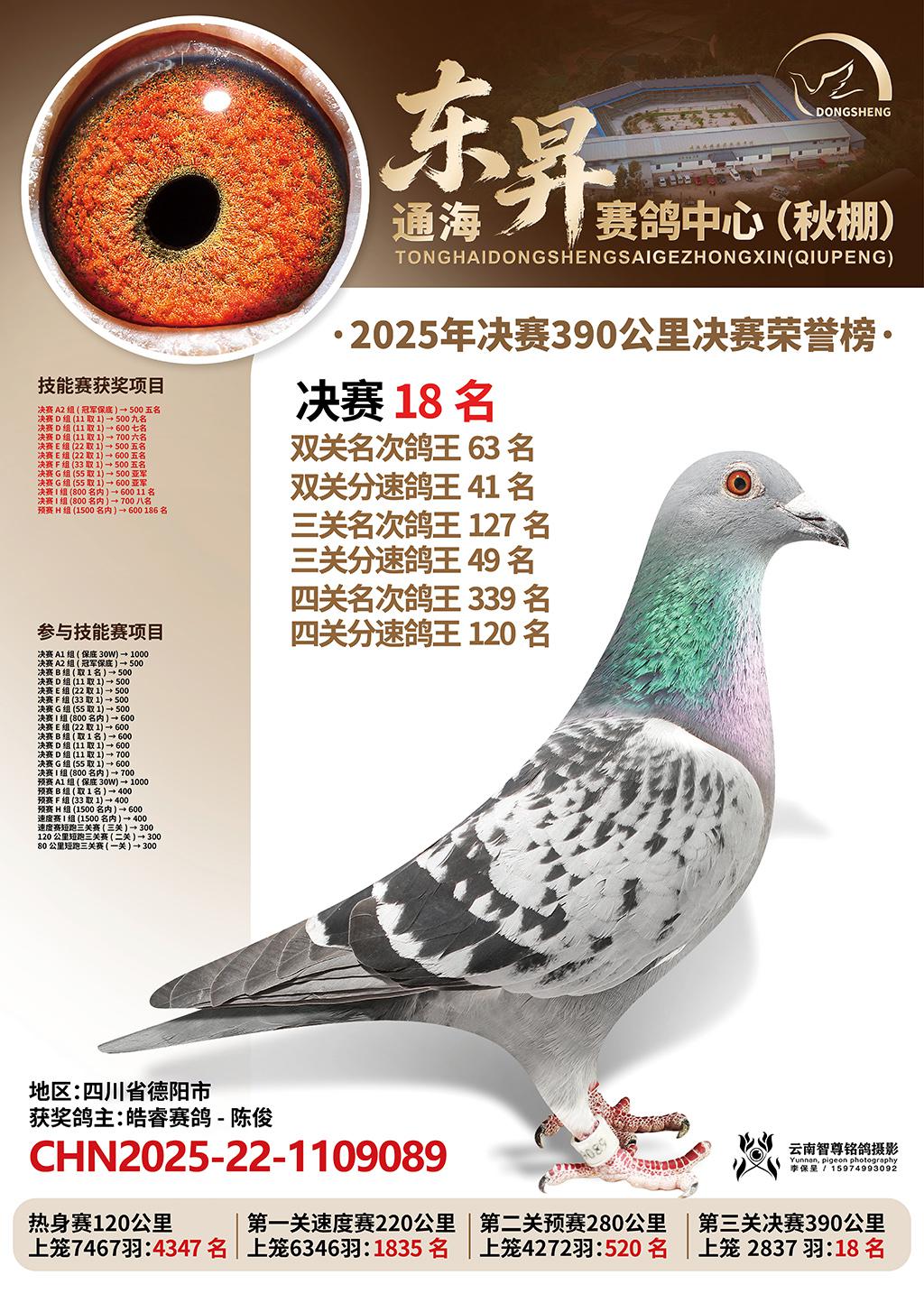 通海东昇赛鸽中心2025决赛18名皓睿赛鸽-陈俊CHN2025-22-1109089四川省德阳市获奖鸽展示!