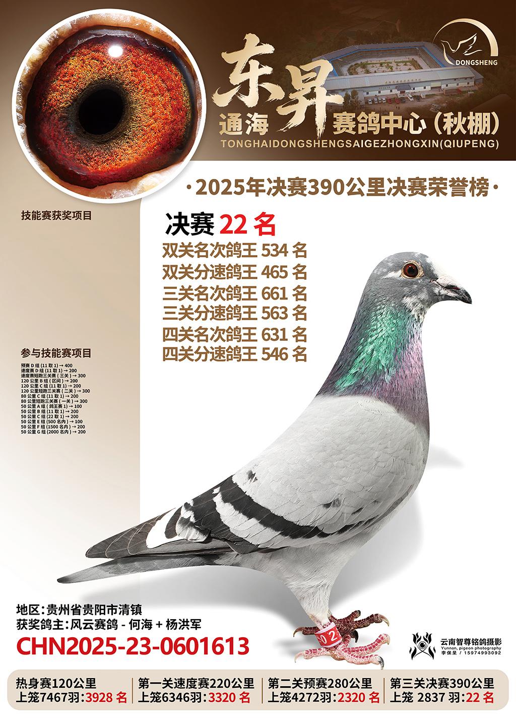 通海东昇赛鸽中心2025决赛22名风云赛鸽-何海+杨洪军CHN2025-23-0601613贵州省贵阳市清镇获奖鸽展示!