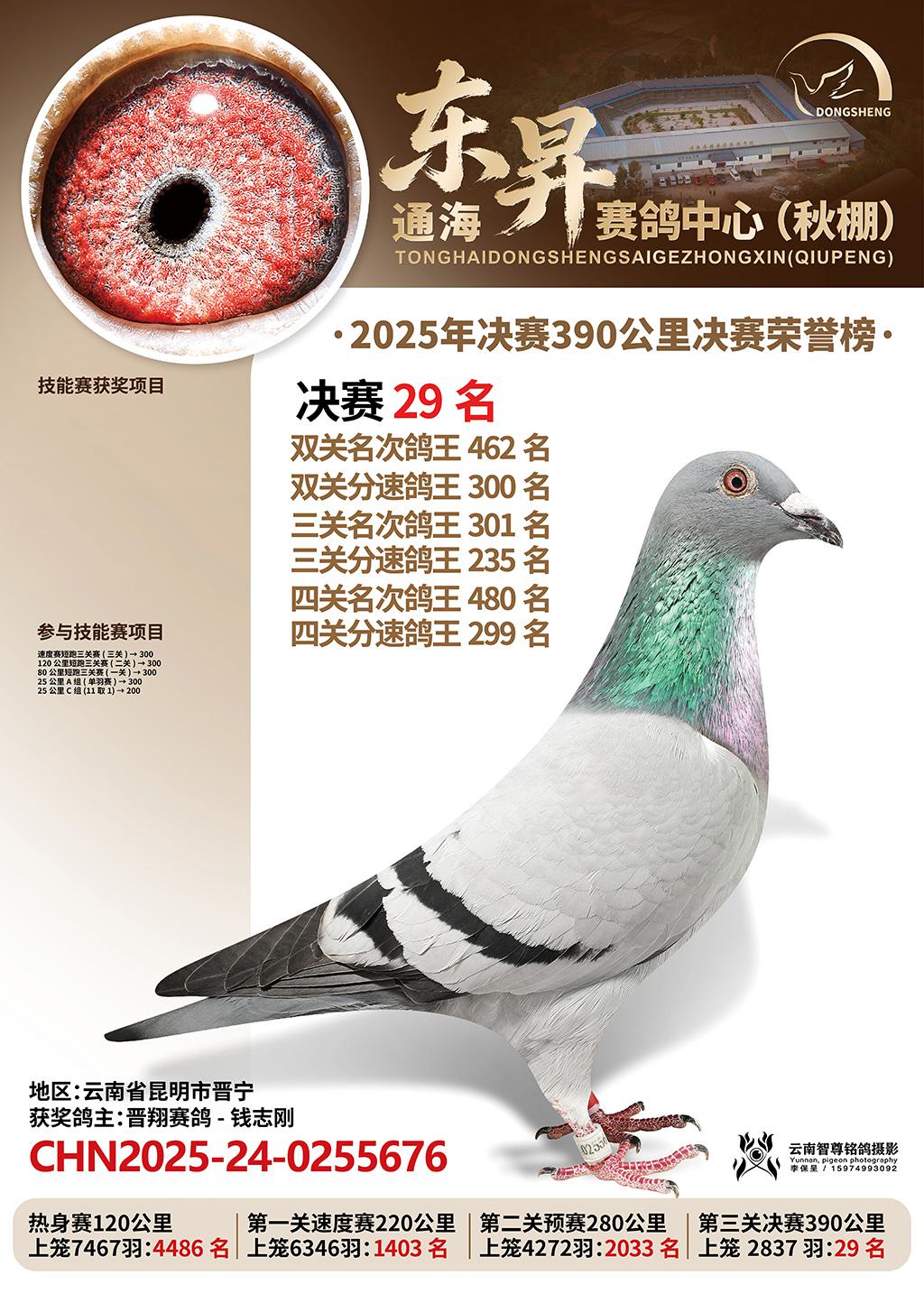 通海东昇赛鸽中心2025决赛29名晋翔赛鸽-钱志刚CHN2025-24-0255676云南省昆明市晋宁获奖鸽展示!