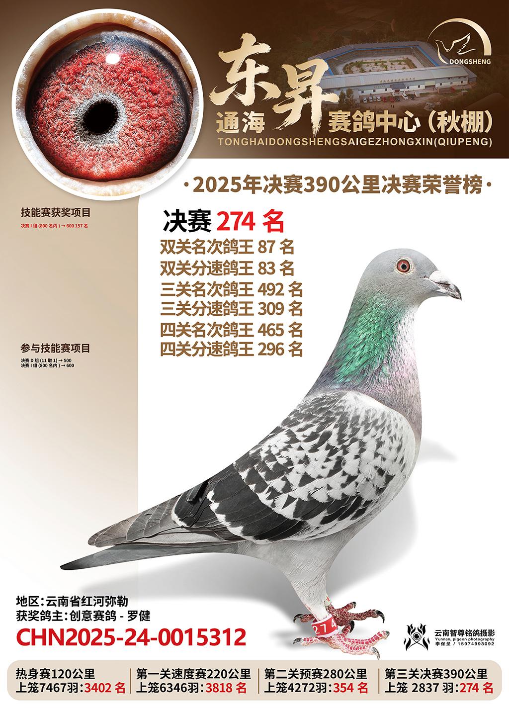 通海东昇赛鸽中心2025决赛274名创意赛鸽-罗健CHN2025-24-0015312云南省红河弥勒获奖鸽展示!