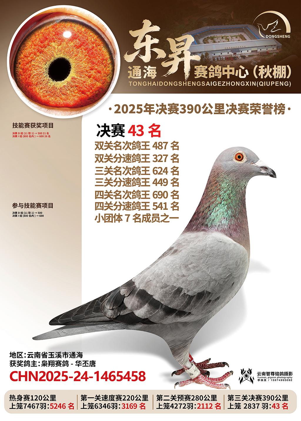 通海东昇赛鸽中心2025决赛43名枭翔赛鸽-华丕唐CHN2025-24-1465458云南省玉溪市通海获奖鸽展示!