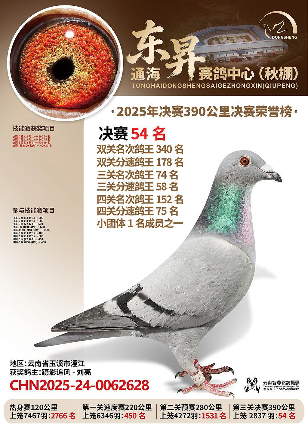 通海东昇赛鸽中心2025决赛54名蹑影追风-刘亮CHN2025-24-0062628云南省玉溪市澄江获奖鸽展示!