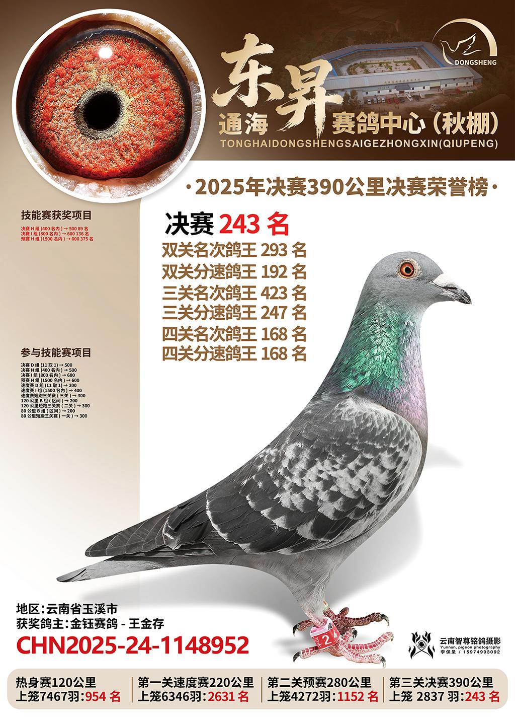 通海东昇赛鸽中心2025决赛243名金钰赛鸽-王金存CHN2025-24-1148952云南省玉溪市获奖鸽展示!