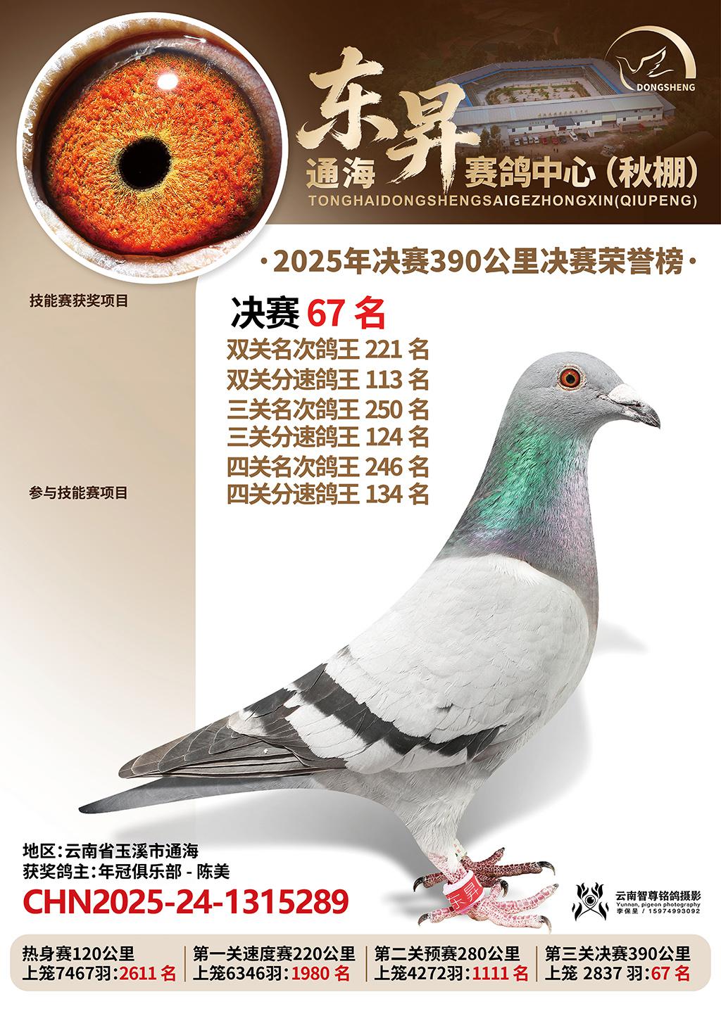 通海东昇赛鸽中心2025决赛67名年冠俱乐部-陈美CHN2025-24-1315289云南省玉溪市通海获奖鸽展示!