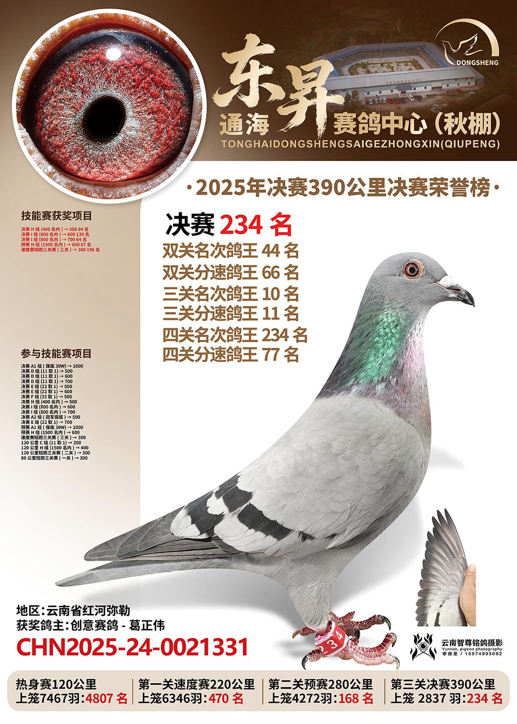 通海东昇赛鸽中心2025决赛234名创意赛鸽-葛正伟CHN2025-24-0021331云南省红河弥勒获奖鸽展示!