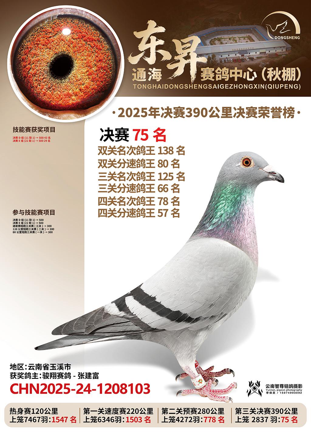 通海东昇赛鸽中心2025决赛75名骏翔赛鸽-张建富CHN2025-24-1208103云南省玉溪市获奖鸽展示!