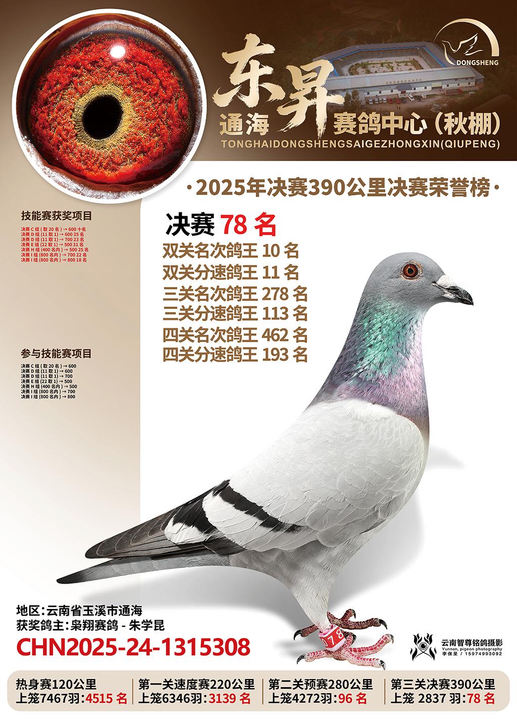 通海东昇赛鸽中心2025决赛78名枭翔赛鸽-朱学昆CHN2025-24-1315308云南省玉溪市通海获奖鸽展示!
