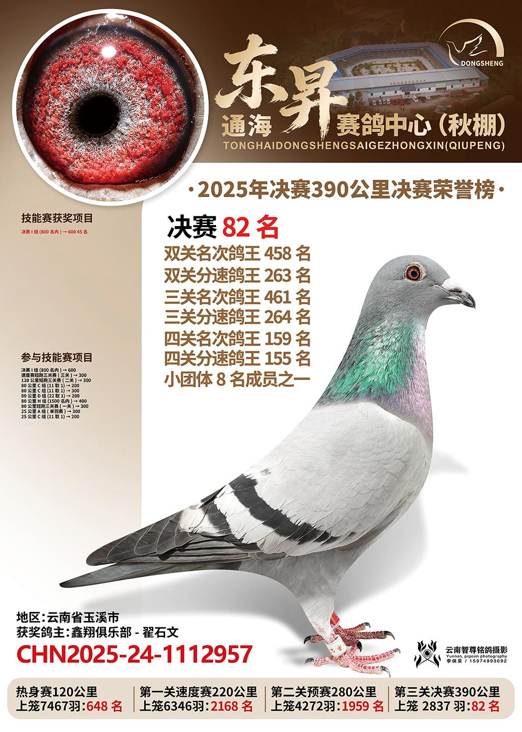 通海东昇赛鸽中心2025决赛82名鑫翔俱乐部-翟石文CHN2025-24-1112957云南省玉溪市获奖鸽展示!