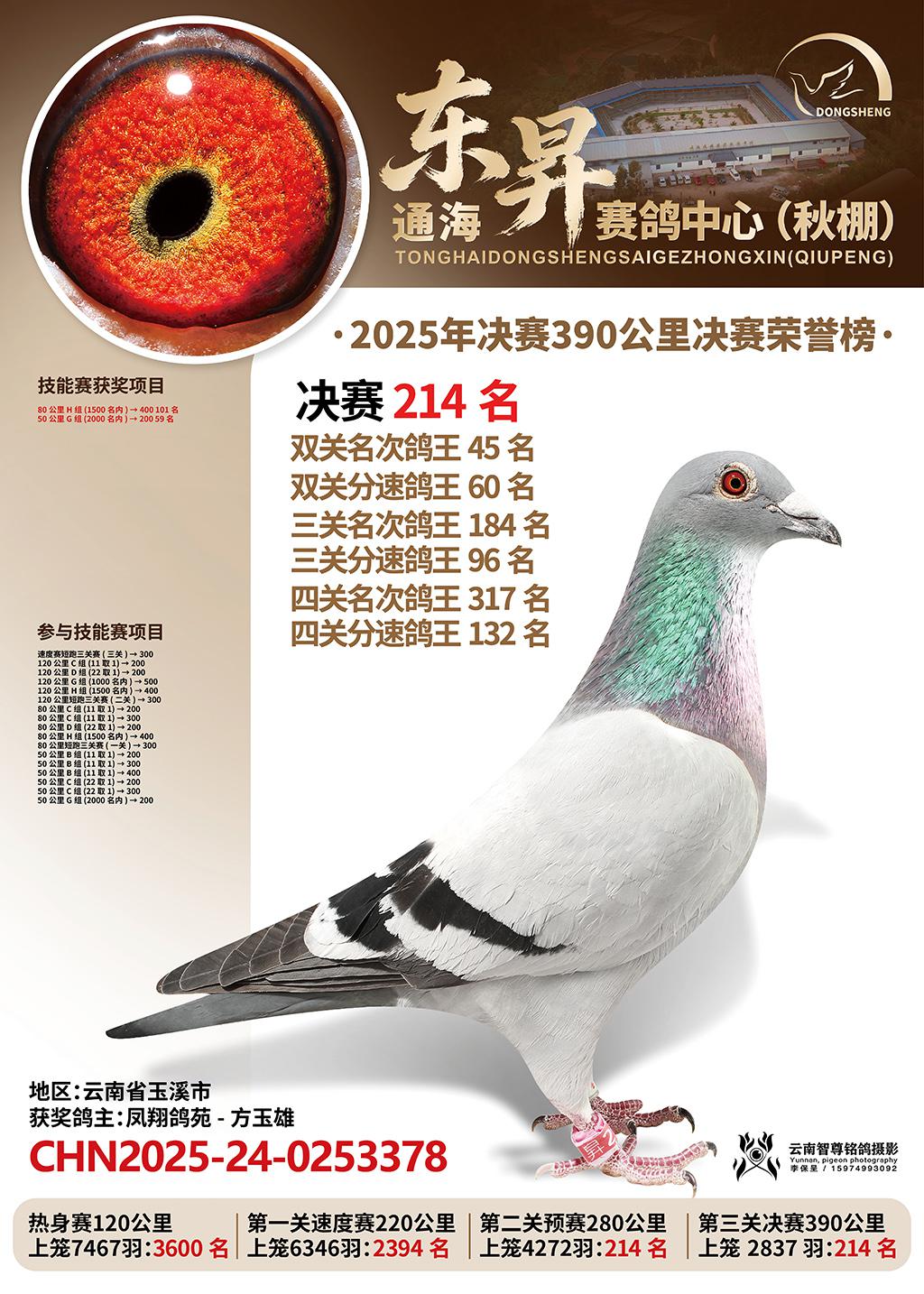 通海东昇赛鸽中心2025决赛214名凤翔鸽苑-方玉雄CHN2025-24-0253378云南省玉溪市获奖鸽展示!