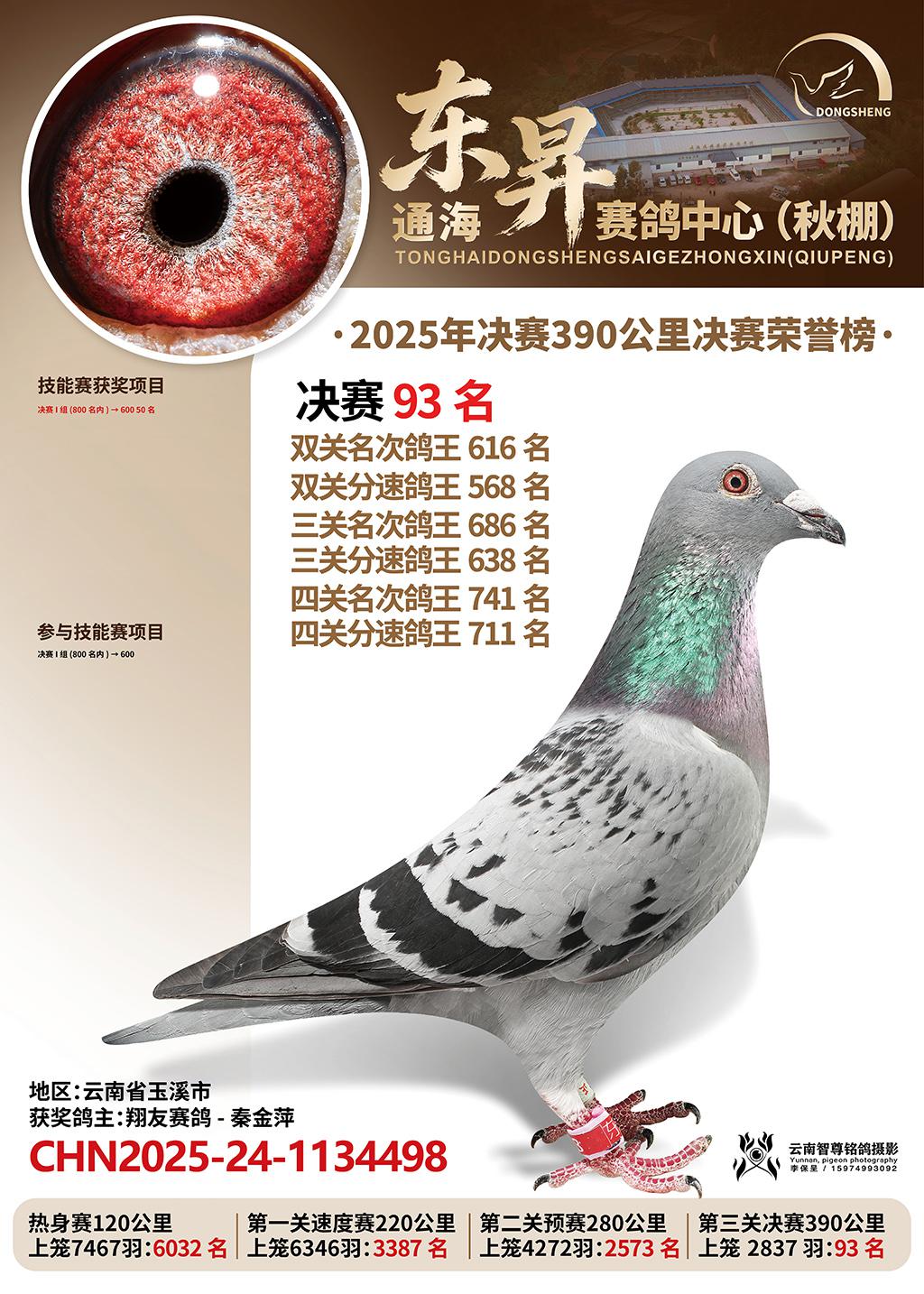 通海东昇赛鸽中心2025决赛93名翔友赛鸽-秦金萍CHN2025-24-1134498云南省玉溪市获奖鸽展示!