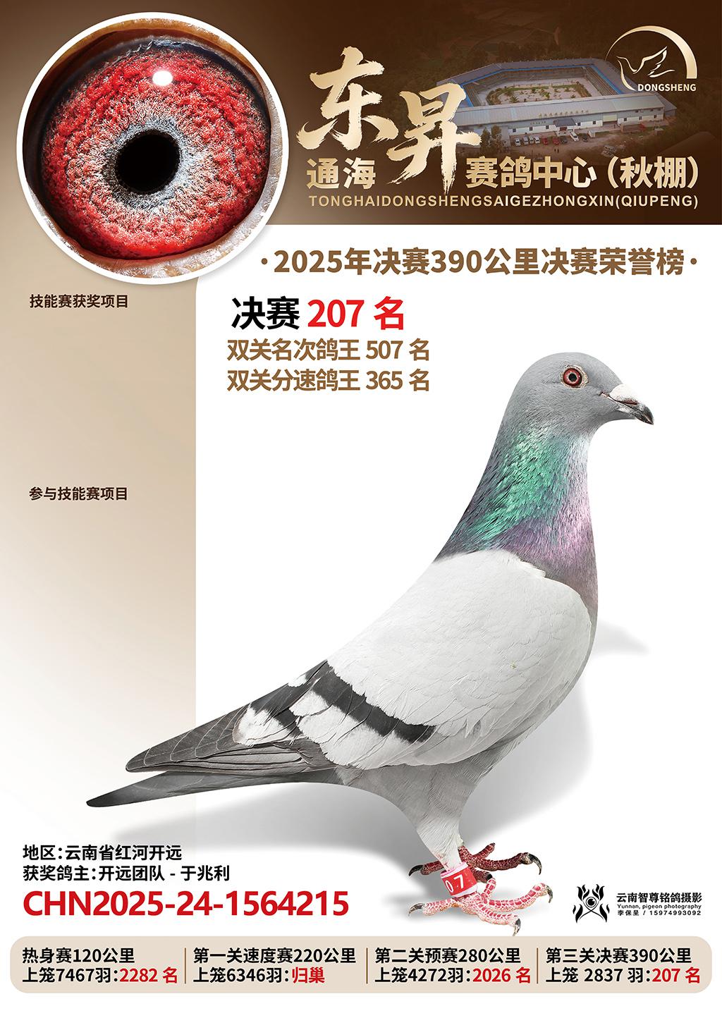 通海东昇赛鸽中心2025决赛207名开远团队-于兆利CHN2025-24-1564215云南省红河开远获奖鸽展示!