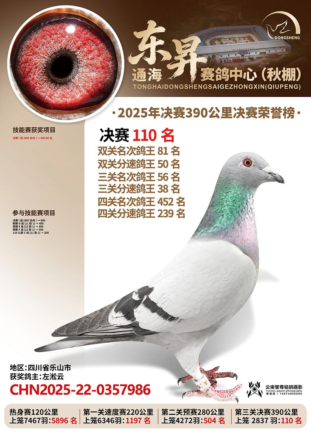 通海东昇赛鸽中心2025决赛110名左淞云CHN2025-22-0357986四川省乐山市获奖鸽展示!