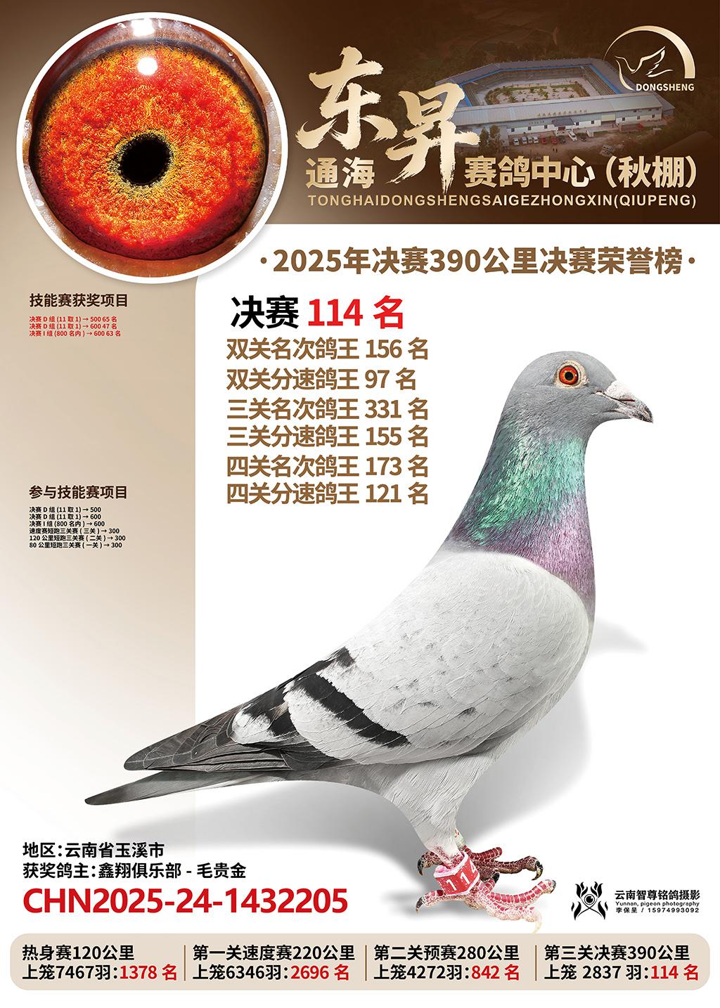 通海东昇赛鸽中心2025决赛114名鑫翔俱乐部-毛贵金CHN2025-24-1432205云南省玉溪市获奖鸽展示!