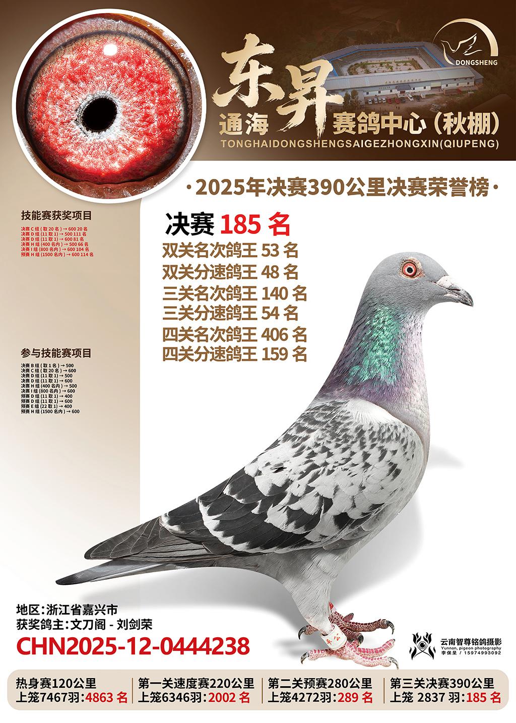 通海东昇赛鸽中心2025决赛185名文刀阁-刘剑荣CHN2025-12-0444238浙江省嘉兴市获奖鸽展示!