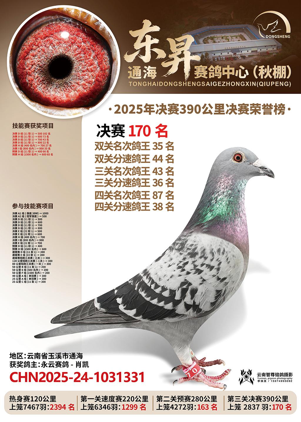 通海东昇赛鸽中心2025决赛170名永云赛鸽-肖凯CHN2025-24-1031331云南省玉溪市通海获奖鸽展示!