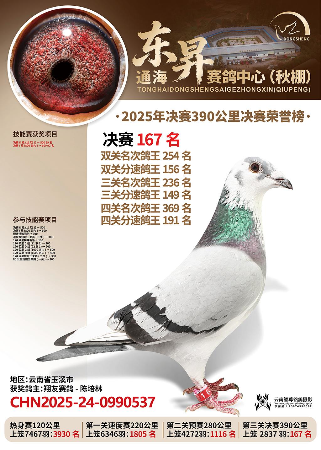 通海东昇赛鸽中心2025决赛167名翔友赛鸽-陈培林CHN2025-24-0990537云南省玉溪市获奖鸽展示!
