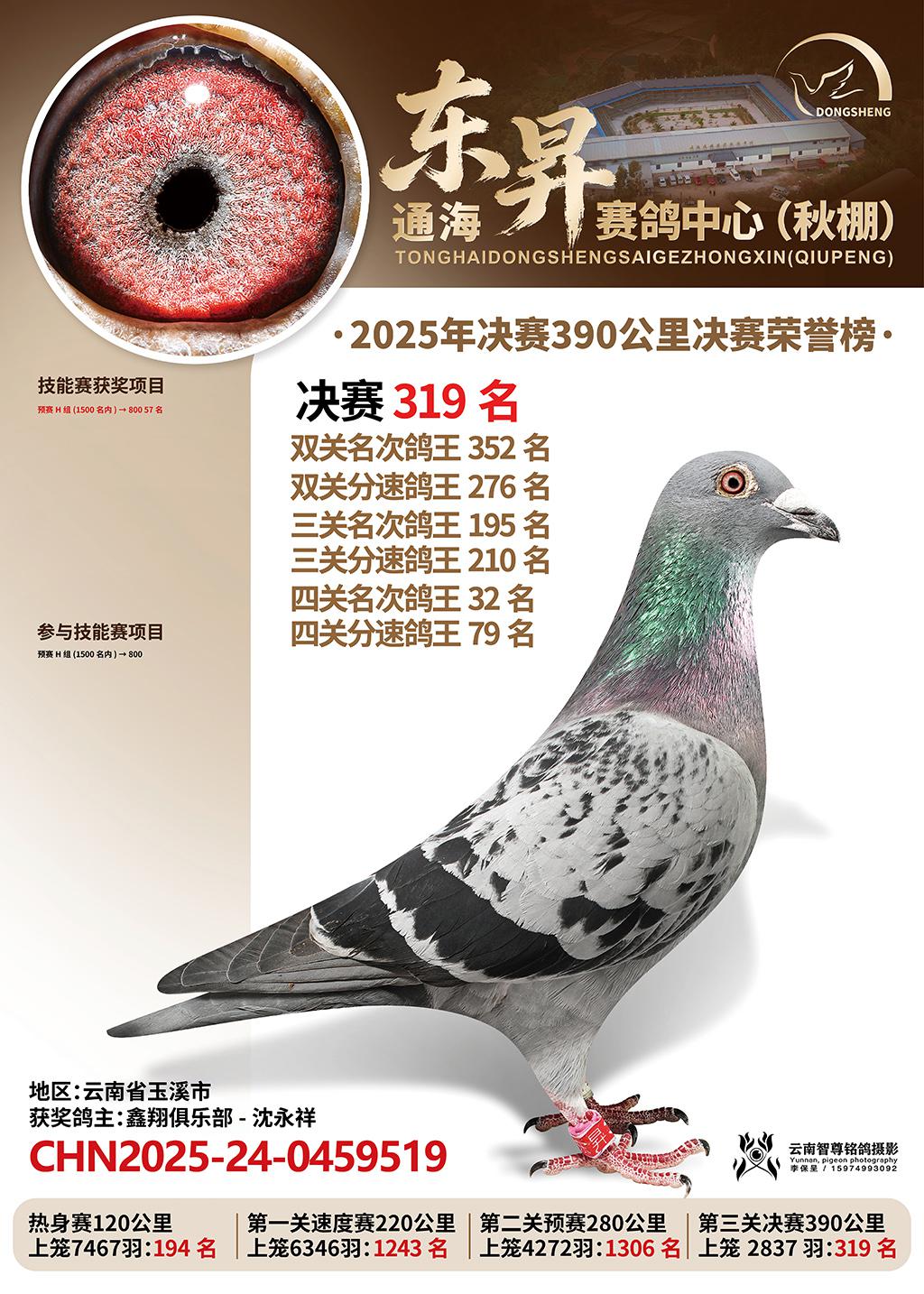 通海东昇赛鸽中心2025决赛319名鑫翔俱乐部-沈永祥CHN2025-24-0459519云南省玉溪市获奖鸽展示!