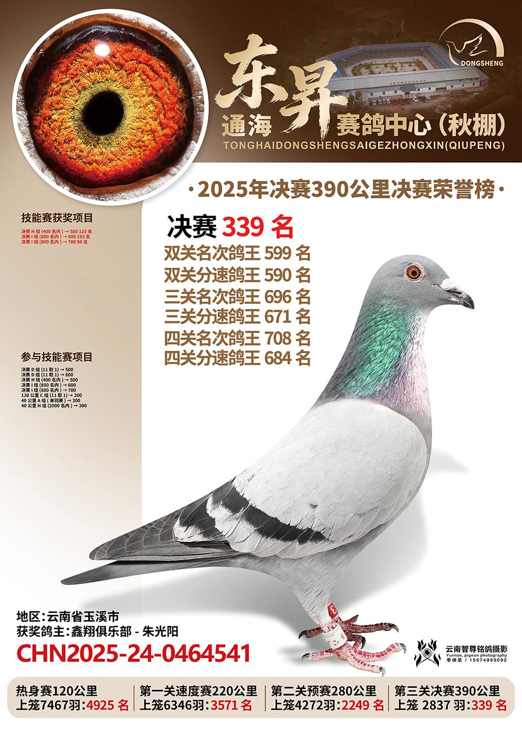 通海东昇赛鸽中心2025决赛339名鑫翔俱乐部-朱光阳CHN2025-24-0464541云南省玉溪市获奖鸽展示!