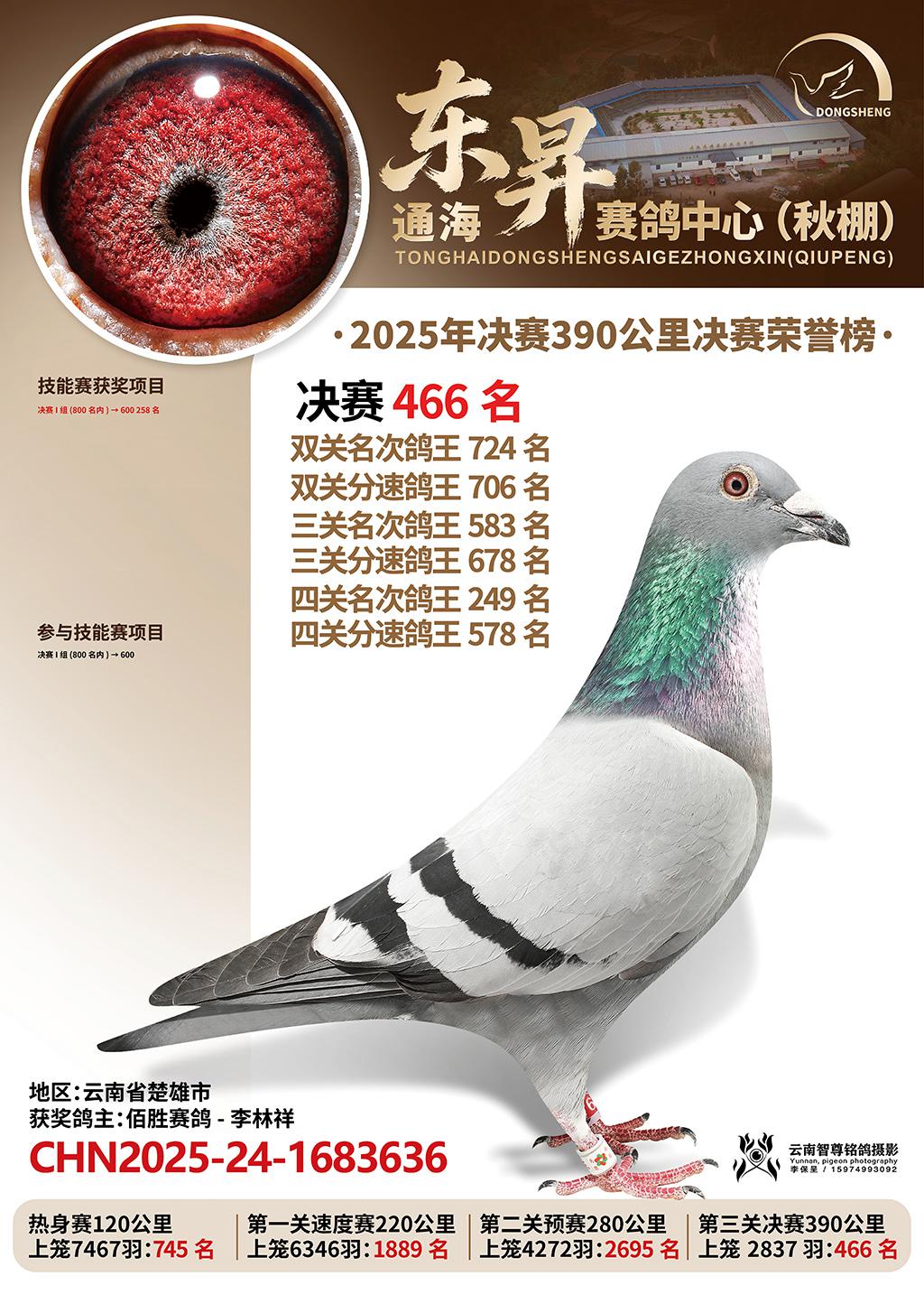 通海东昇赛鸽中心2025决赛466名佰胜赛鸽-李林祥CHN2025-24-1683636云南省楚雄市获奖鸽展示!