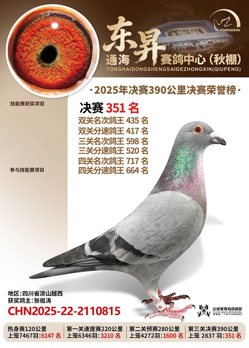 通海东昇赛鸽中心2025决赛351名张祖涛CHN2025-22-2110815四川省凉山越西获奖鸽展示!