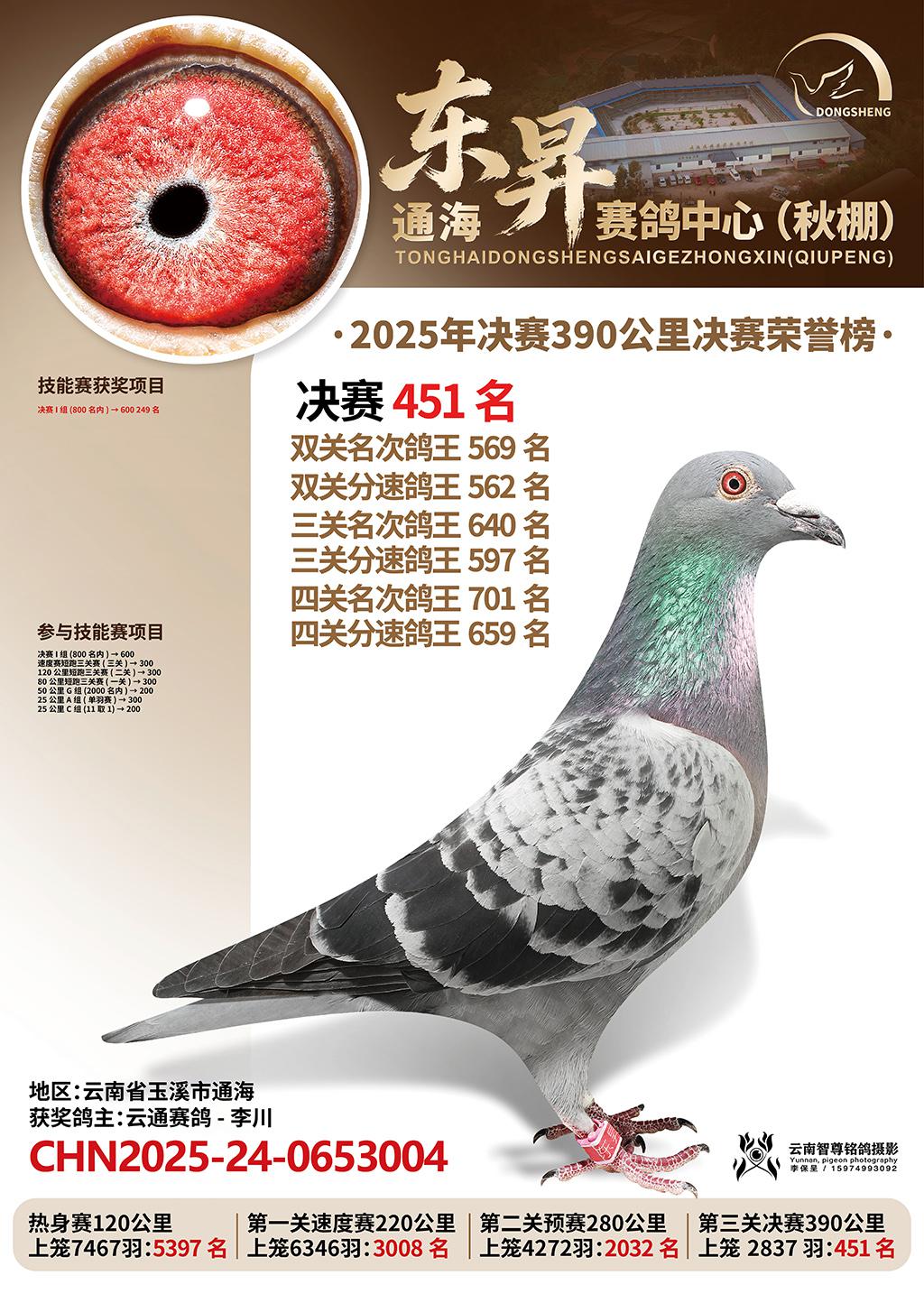通海东昇赛鸽中心2025决赛451名云通赛鸽-李川CHN2025-24-0653004云南省玉溪市通海获奖鸽展示!