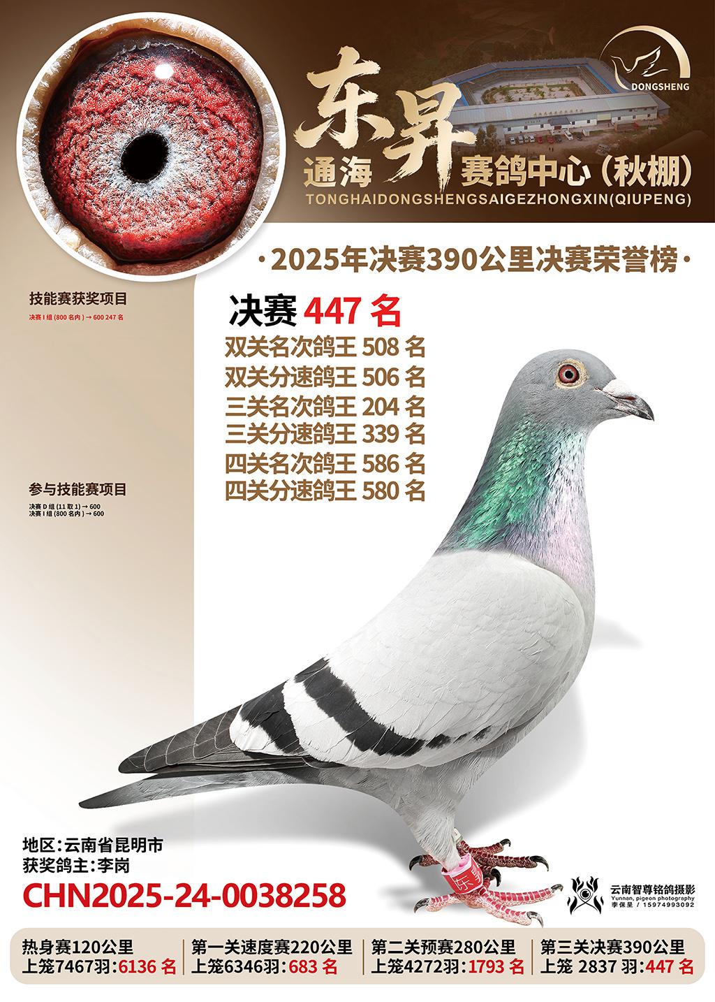 通海东昇赛鸽中心2025决赛447名李岗CHN2025-24-0038258云南省昆明市获奖鸽展示!