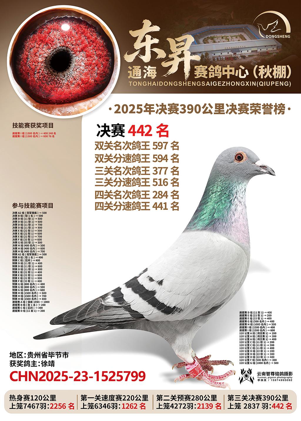 通海东昇赛鸽中心2025决赛442名徐靖CHN2025-23-1525799贵州省毕节市获奖鸽展示!