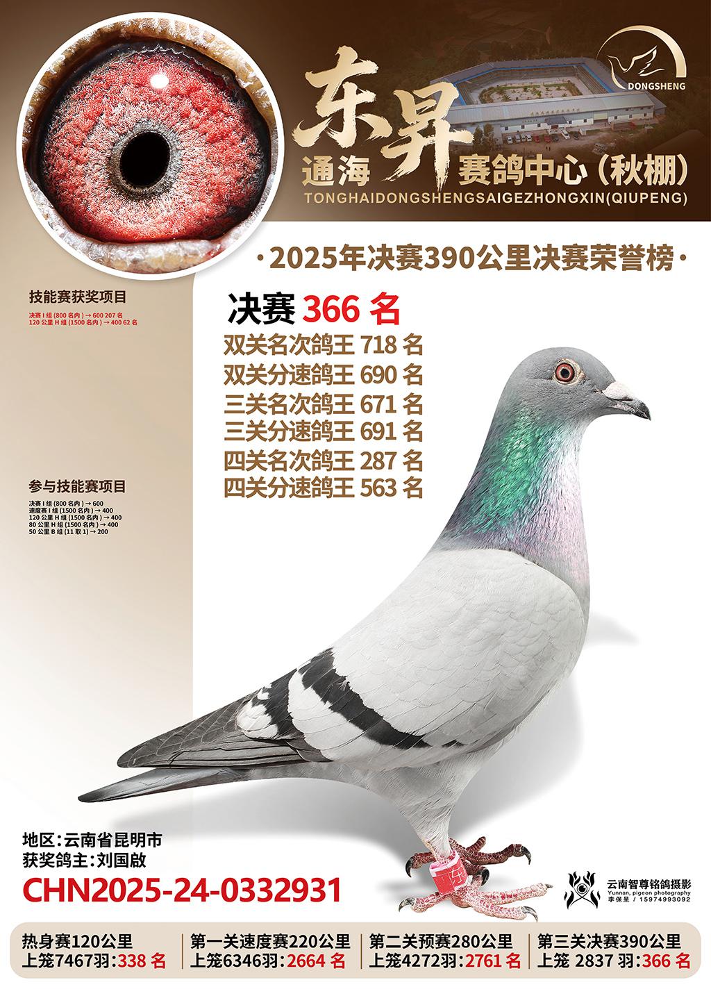 通海东昇赛鸽中心2025决赛366名刘国啟CHN2025-24-0332931云南省昆明市获奖鸽展示!