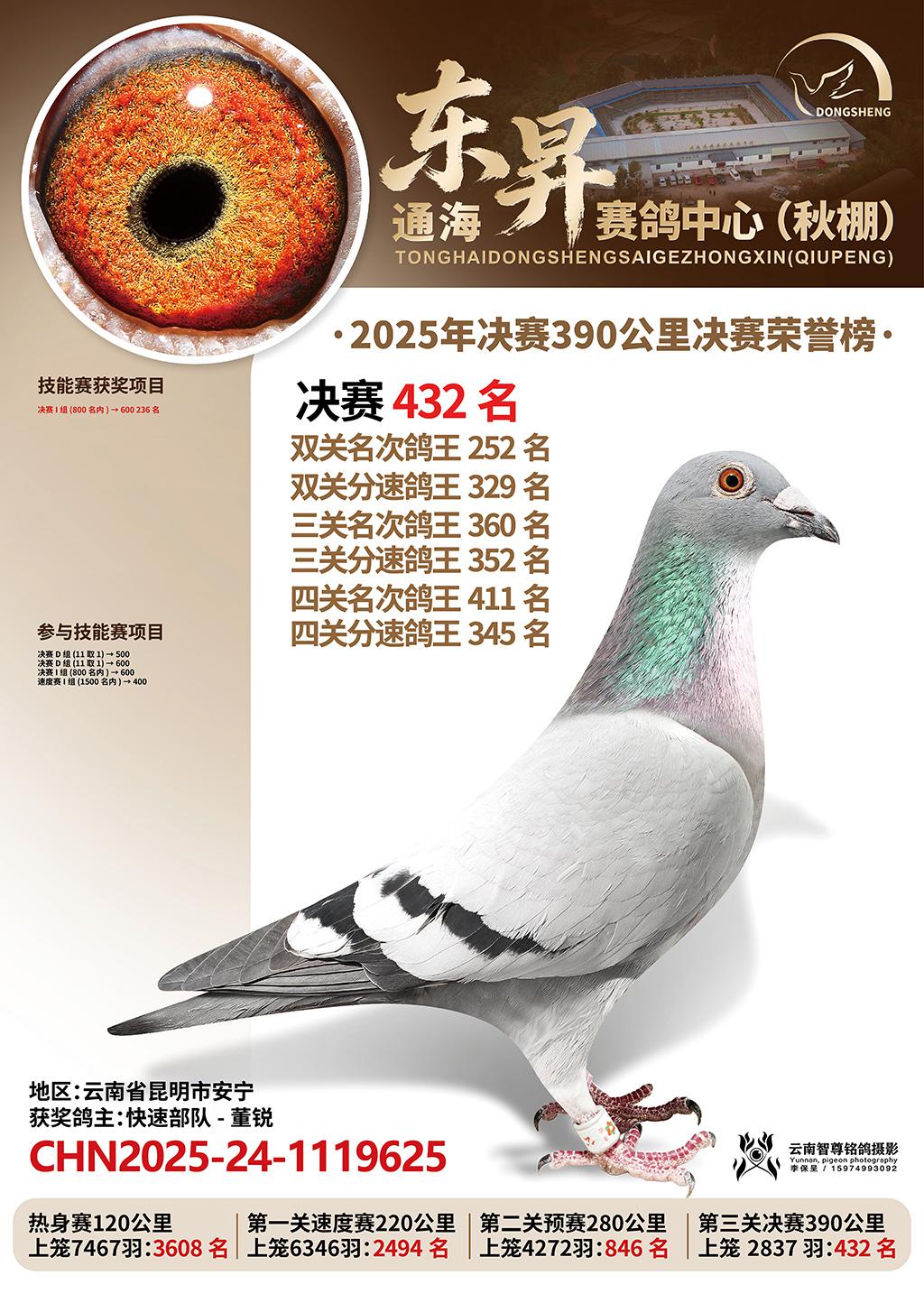 通海东昇赛鸽中心2025决赛432名快速部队-董锐CHN2025-24-1119625云南省昆明市安宁获奖鸽展示!