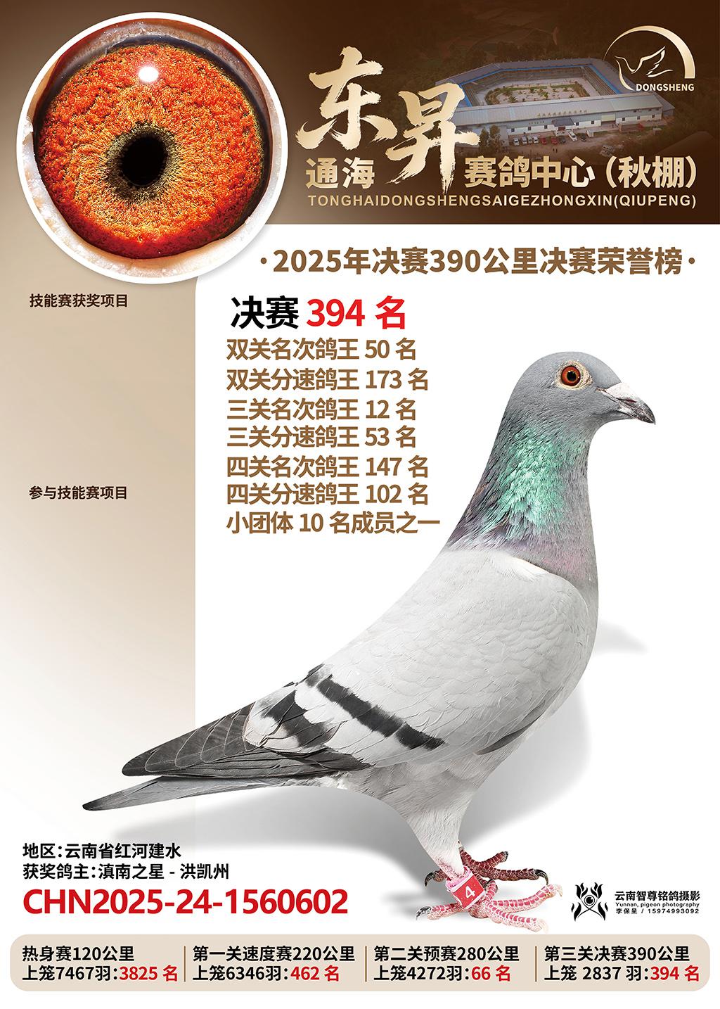 通海东昇赛鸽中心2025决赛394名滇南之星-洪凯州CHN2025-24-1560602云南省红河建水获奖鸽展示!